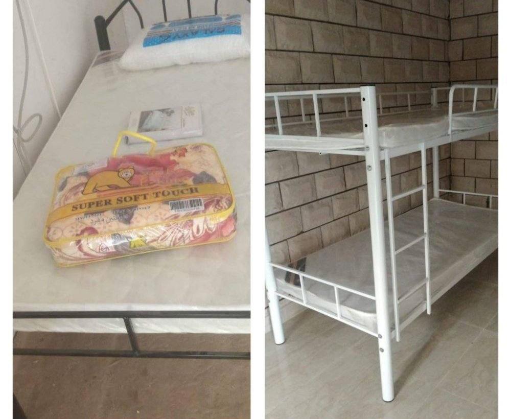 سرير حديد ومرتبه طبيه وبطانيه ومخده والملايات