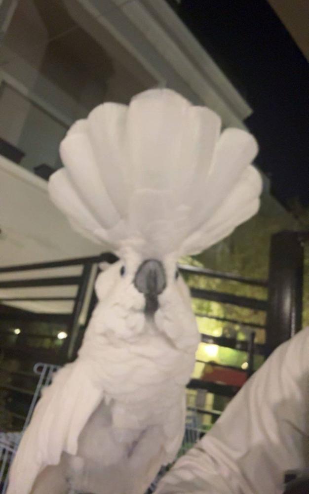 للبيع كوكاتو امبريلا ربوه العمر اقل من سنه صحته زينه مو محتاج شي لعوب و يلقط كلمات و يرقص و يقلد الضحكه و يبوس و مافي عض نهائيا معا اغراضه كامله