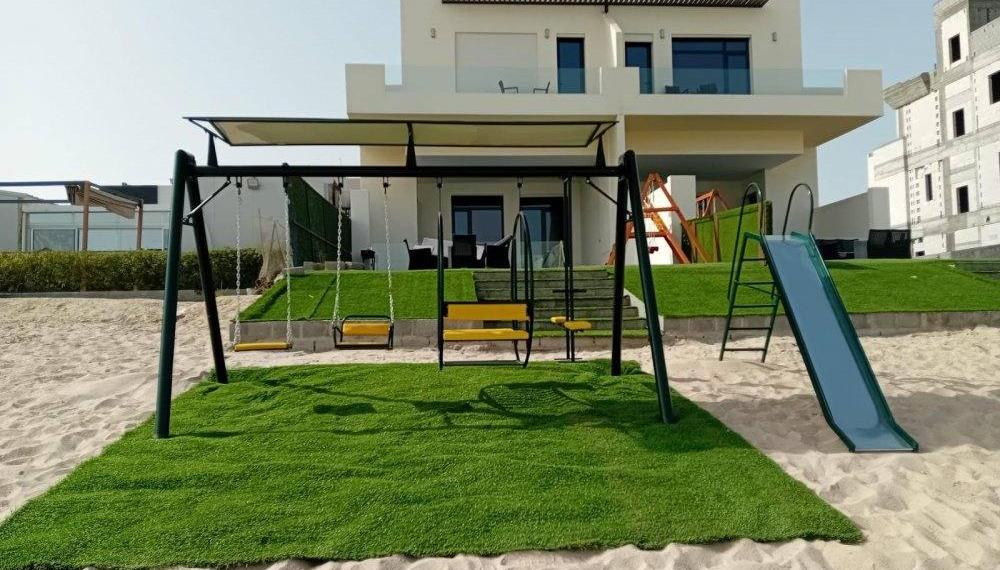 شاليه فرح مقسوم A&B/ صف اول جديد2025 /5 غرف نوم / صاله مع حمامها ودوانيه مع حمامها وغرفة عاملات مع حمامها/ مطبخ مجهز بالكامل / ألعاب أطفال / حمام سباحه مع تدفئة/ الموقع بالمرحله الخامسه هاديء / التأجير من المالك مباشرة للتواصل واتس آب