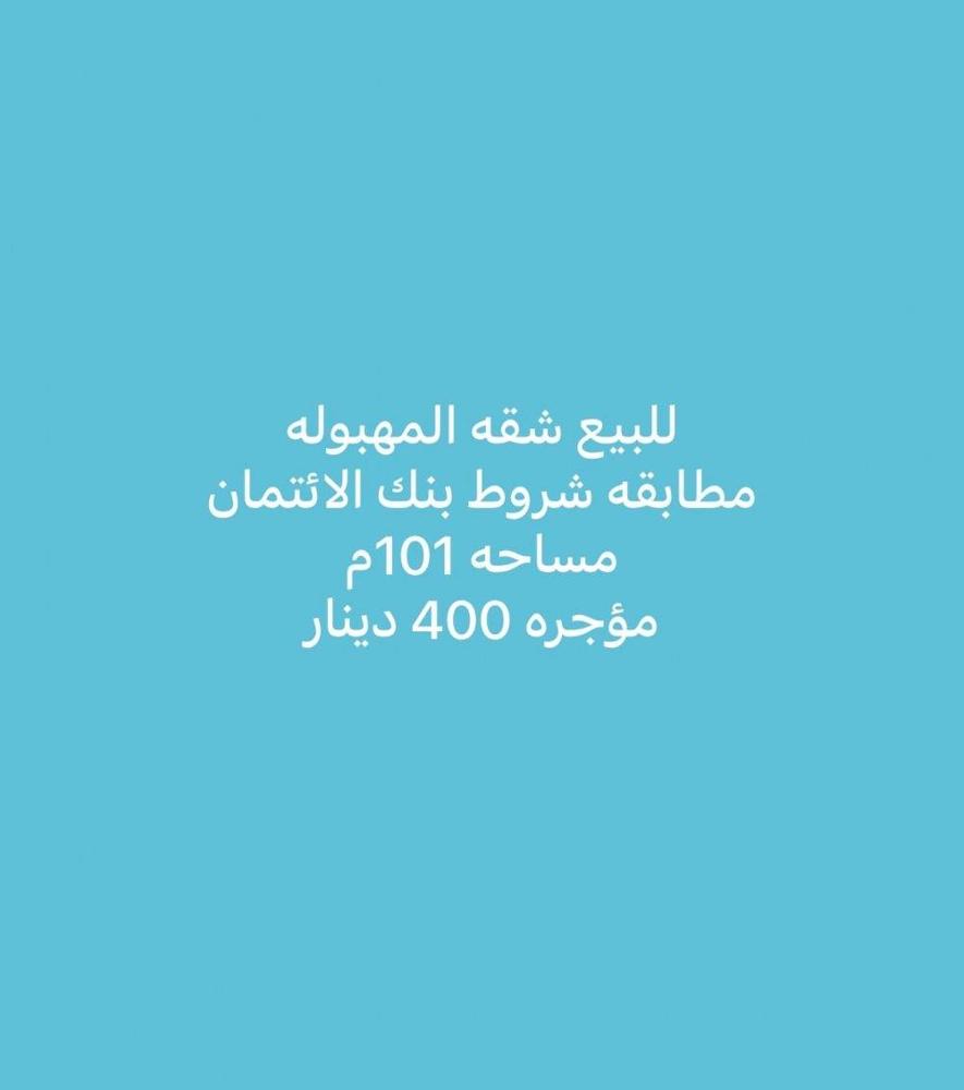 للبيع شقه المهبوله مساحه 101م مؤجره 400د دور اول تجاري
