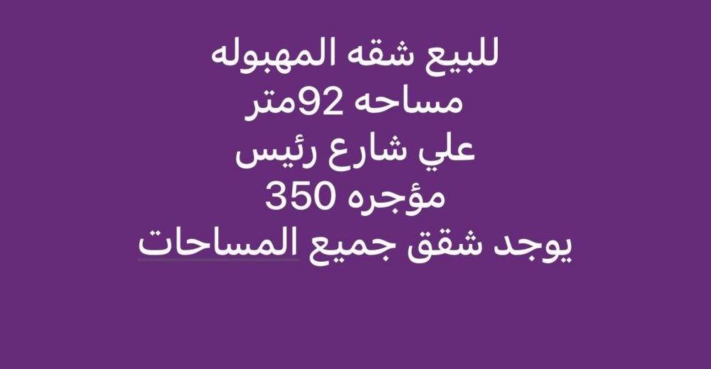 للبيع شقه المهبوله 92متر مؤجره 350