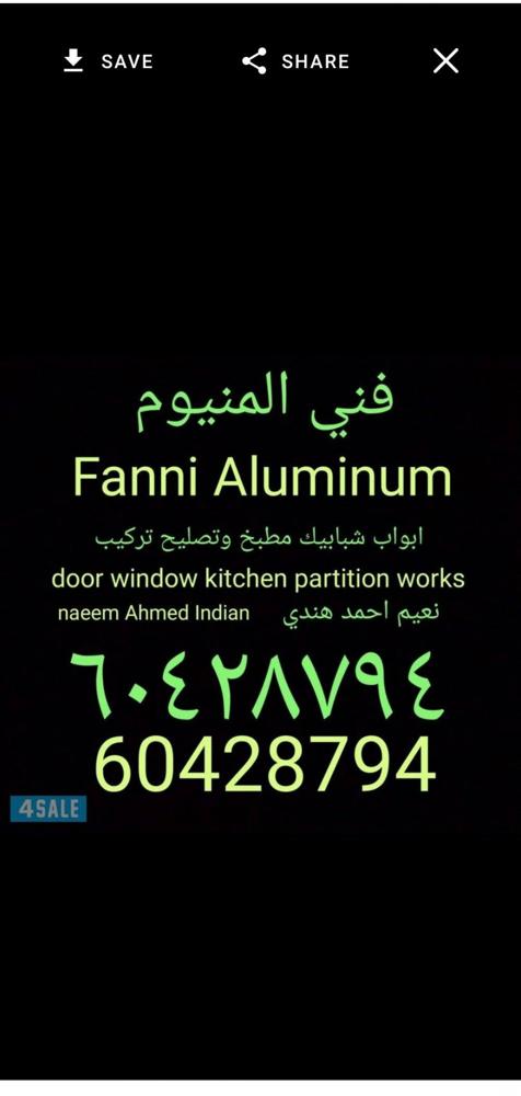 المنيوم ابواب شبابيك مطبخ شتر جام سكريت وتصليح