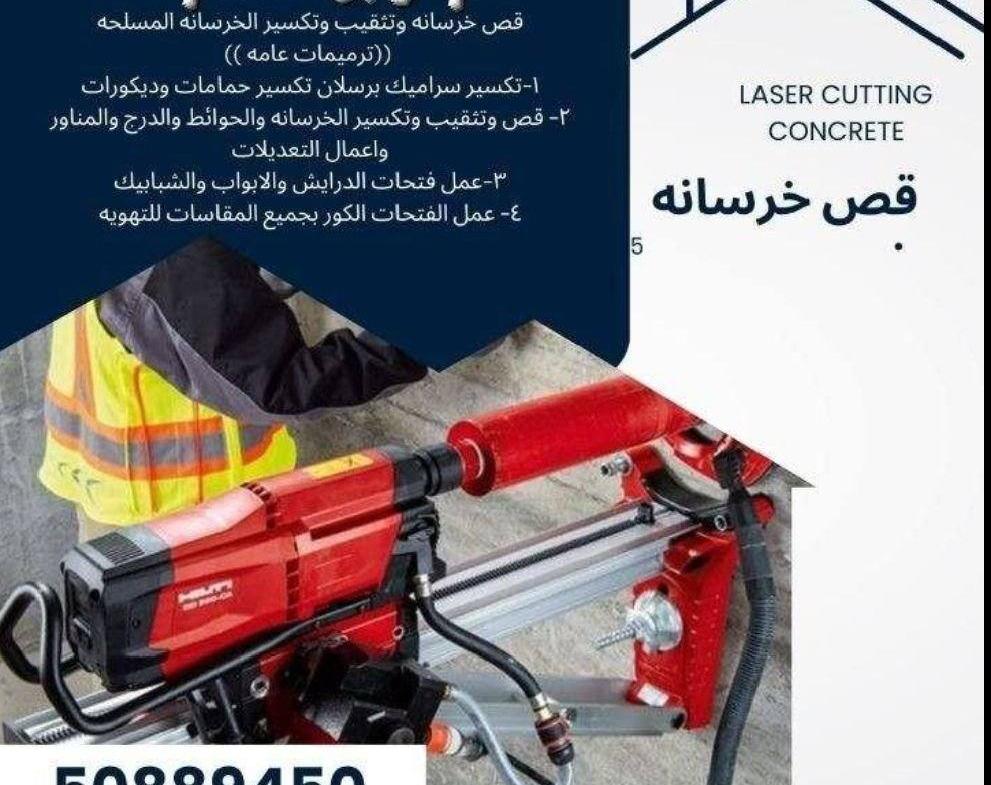 قص خرسانه وقص الأبواب بالليزر وعمل فتقات الكور