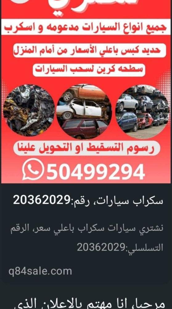 نشتري جميع السيارات المستعملة والمدعومة السكراب وتسقط علينا