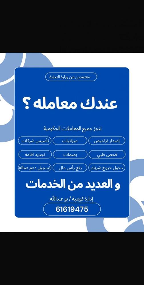 ننجز جميع معاملاتكم الحكومية للشركات و الأفراد أدارة كويتية