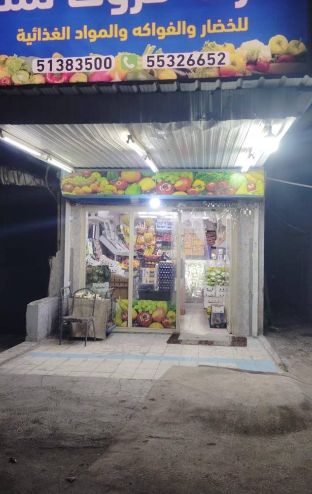 محل خضار وفواكهه مساحته 4/6 + غرفة سكن عمال مساحتها 4/4 عدد 2 عمال