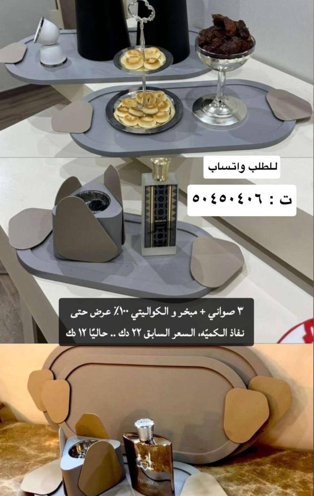 للبيع صواني عدد ٣ + مبخر البيع جمله او مفرق يصلحون للحلويات وللشاي والقهوه وللتقديم للجادين فقط