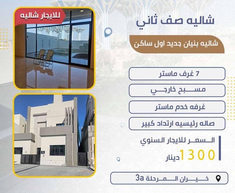 للايجار شاليه صف ثاني بنيان جديد اول ساكن و شهر مجانا