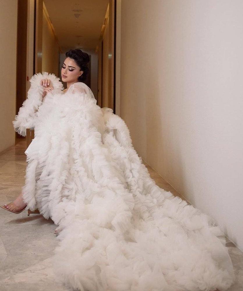 رداء عروس فخم وراقي من المصممة bynon نفس رداء عرس المودل ثريا استعمال ساعة وحده فقط