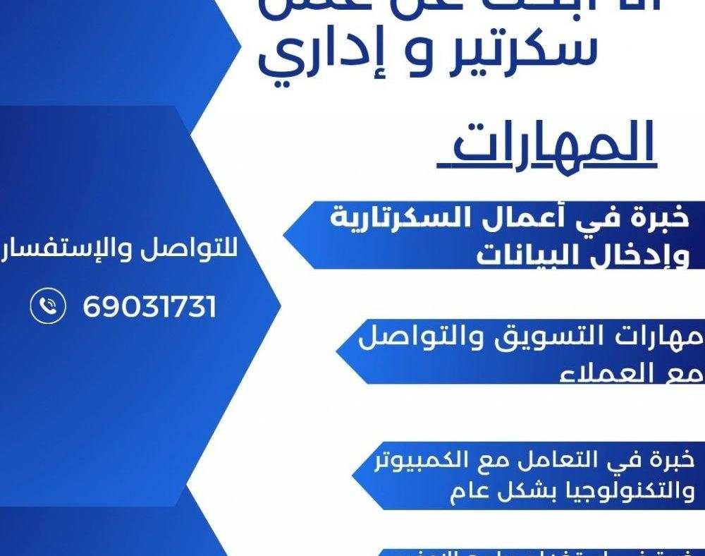 انا ابحث عن عمل سكرتير و إداري ومدخل بيانات خبرة باعمال السكرتيرة و أيضا خبرة في التسويق و التواصل مع العملاء وخبرة في التكنولوجيا واستخدام برامج الاوفيس وترتيب وتنظيم الملفات