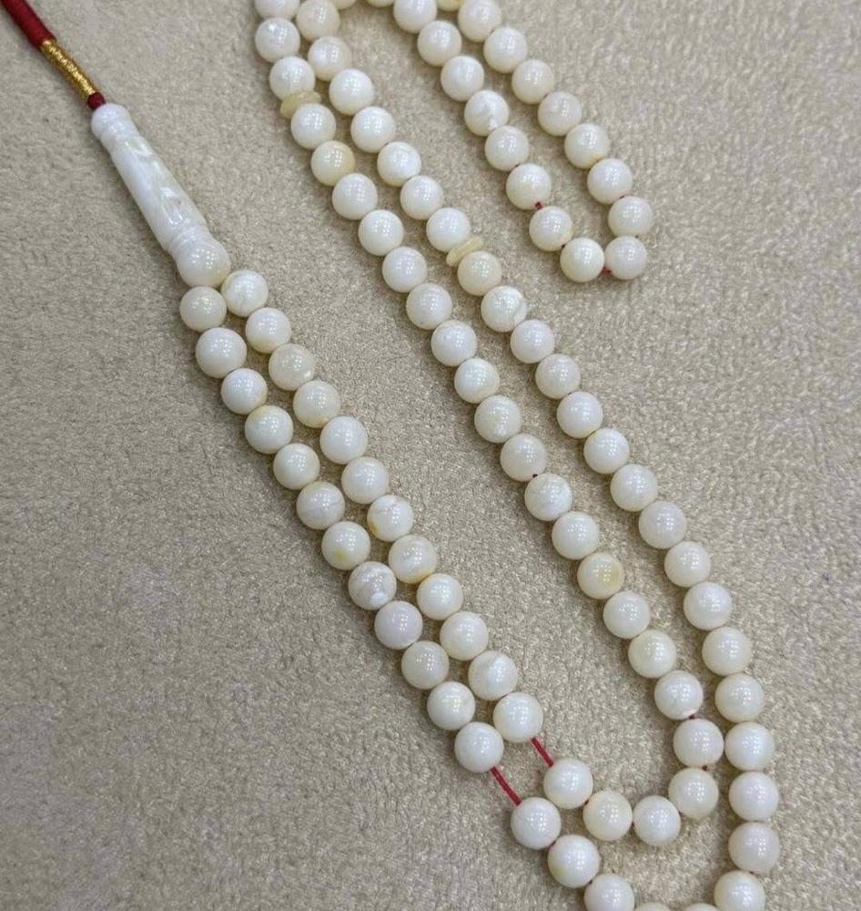كهرب ابيض ناعم مشخط جبس الوزن ٩ غ قياس ٥ -٥.٥ ملي عدد الخرز ٩٩ مسباح ناعم (صغير)