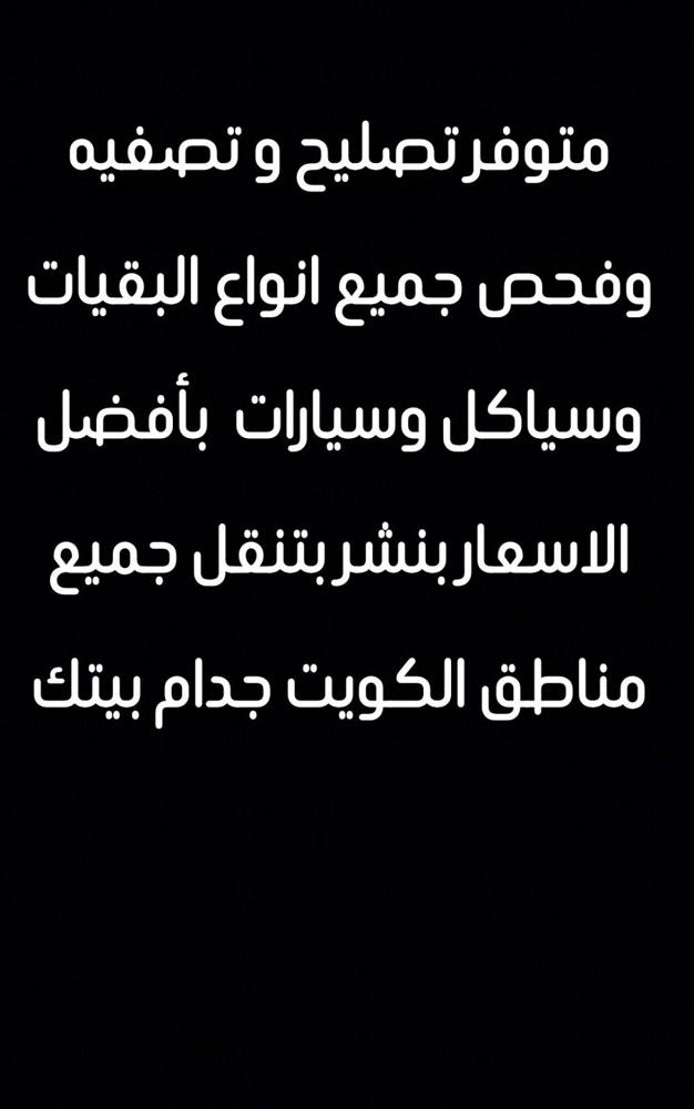 متوفر تصليح و تصفيه وفحص جميع انواع البقيات وسياكل وسيارات بأفضل الاسعار بنشر بتنقل جميع مناطق الكويت جدام بيتك للتواصل واتساب فقط