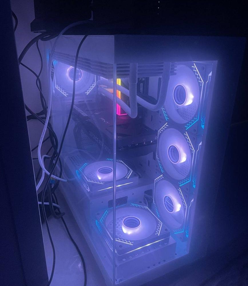 مواصفات الجهاز Cpu:I7-14700k Motherboard:msi B760-E D5 Ram : predator vesta II 2x16 6000 Ssd lexar 1tb VGA CARD RTX5070 OC 3Fan Power supply huntkey 850W gold Cpu liguid GPRO KING 360 الشاشة ASUS ROG Swift OLED PG27AQDM gaming monitor ― 27-inch (26.5-inch viewable) QHD (2560 x 1440) OLED panel, 240Hz, 0.03 ms response time, G-SYNC® compatible, 99% DCI-P3, true 10-bit color عالسوم والبيع مع بعض رجاءا لاتبخس بالسعر ماعندك لاتدش