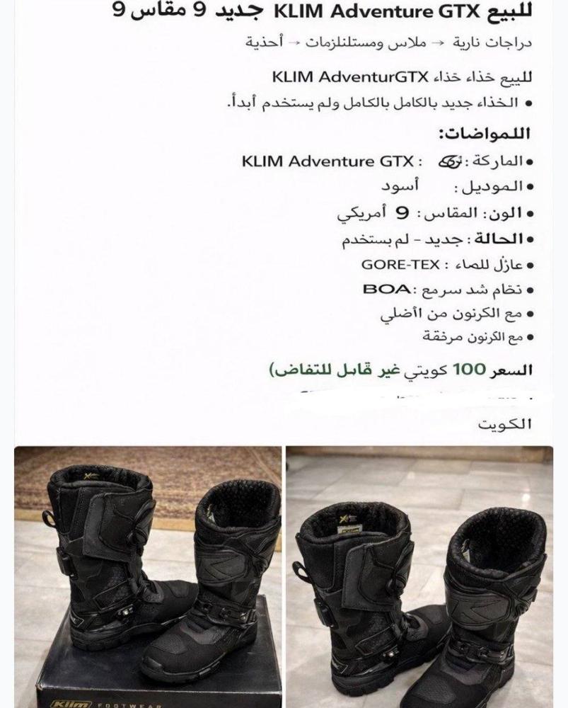 للبيع حذاء KLIM Adventure GTX ✔️ جديد ولم يُلبس ✔️ المقاس: 9 أمريكي ✔️ عازل للماء GORE-TEX ✔️ نظام شد BOA