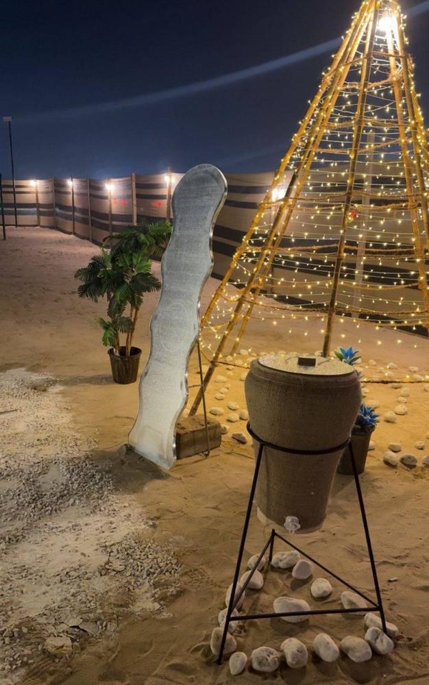 للايجار مخيم مكون من كرفان فيه غرفه نوم رئيسيه وغرفه نوم بالخلف وصاله وتلفزيون ومطبخ تحضيري 🚃وخيمه شراع ٥/٩ جلسه ارضيه جديده والاثاث جديد🏕️ وخيمه ٥/٨ جلسه ارضيه 🏕️ جلستين خارجيه مع دفايه 🔥والعاب اطفال وملعب كره طائره ⛹️‍♂️وركن للشواء وركن للتصوير حمام ومطبخ مجهز بكل احتياجاته وماي حار بارد السعر ايام عاديه 50 مع مبيت 60 ويكند 60 مع مبيت 70وتامين 50 على نظافه المكان وتلف او فقدان الاغراض او كسر الاغراض او حرق السجاد