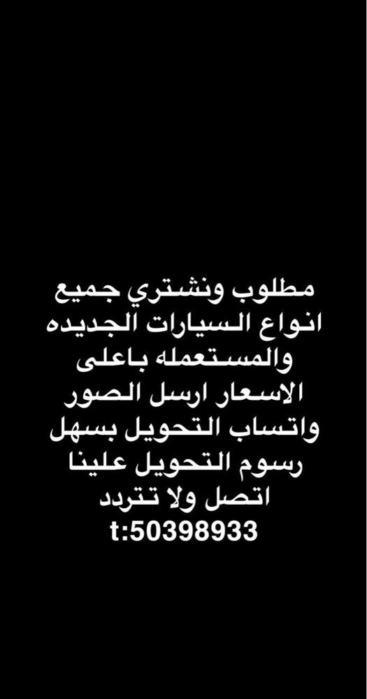 مطلوب ونشتري جميع انواع السيارات