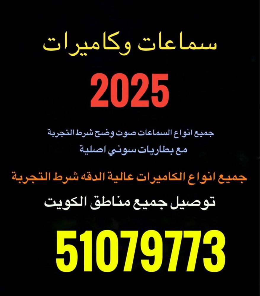 جميع انواع السماعات جديده ٢٠٢٥ صوت واضح شرط التجربة يوجد بطاريات سوني اصلية الحبه بدينار كميه محدوده يوجد كاميرا زرار اسبانيه توصيل جميع مناطق الكويت