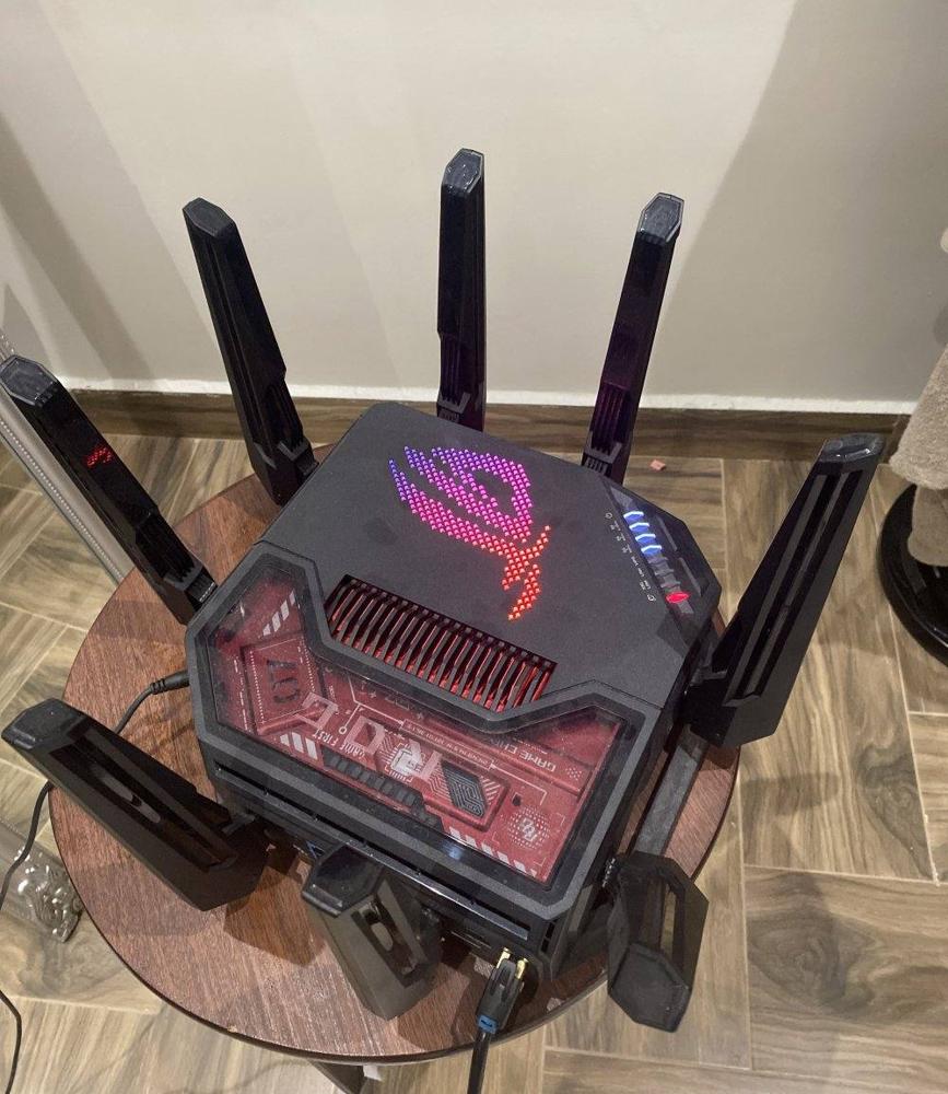 Asus ROG Rapture GT-BE98 BE25000 Quad-Band WiFi-7 جهاز شبكة راوتر قوي جدا وفيه مميزات يغطي البيت بمساحة 500 متر وفوق ، يشبك مع الواي فاي للجيل الحالي 5G و الجيل الجاي 6G & 7G السعر 150 (قابل للمساومة بالمعقول)