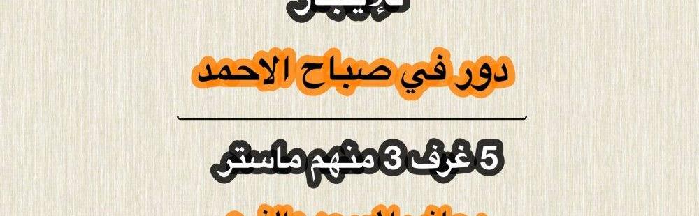للإيجار دور في صباح الاحمد يتكون من 5 غرف 3 منهم ماستر + غرف صغيره + مطبخين عبارة عن شقتين مفتوحين على بعض بجانب المسجد والفرع