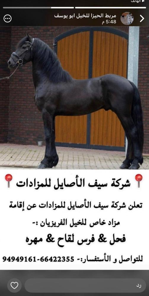 يوجد لدينا بيعة خاصة خيل فريزيان كوالتي عالي من العيار الثقيل