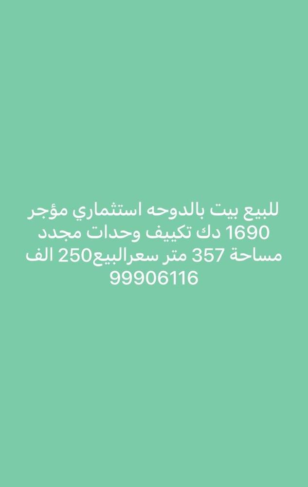 للبيع بيت بالدوحه استثماري مؤجر 1690 دك مساحة 357 متر 9 شقق تكييف وحدات مجدد شارع واحد سعرالبيع 250 الف