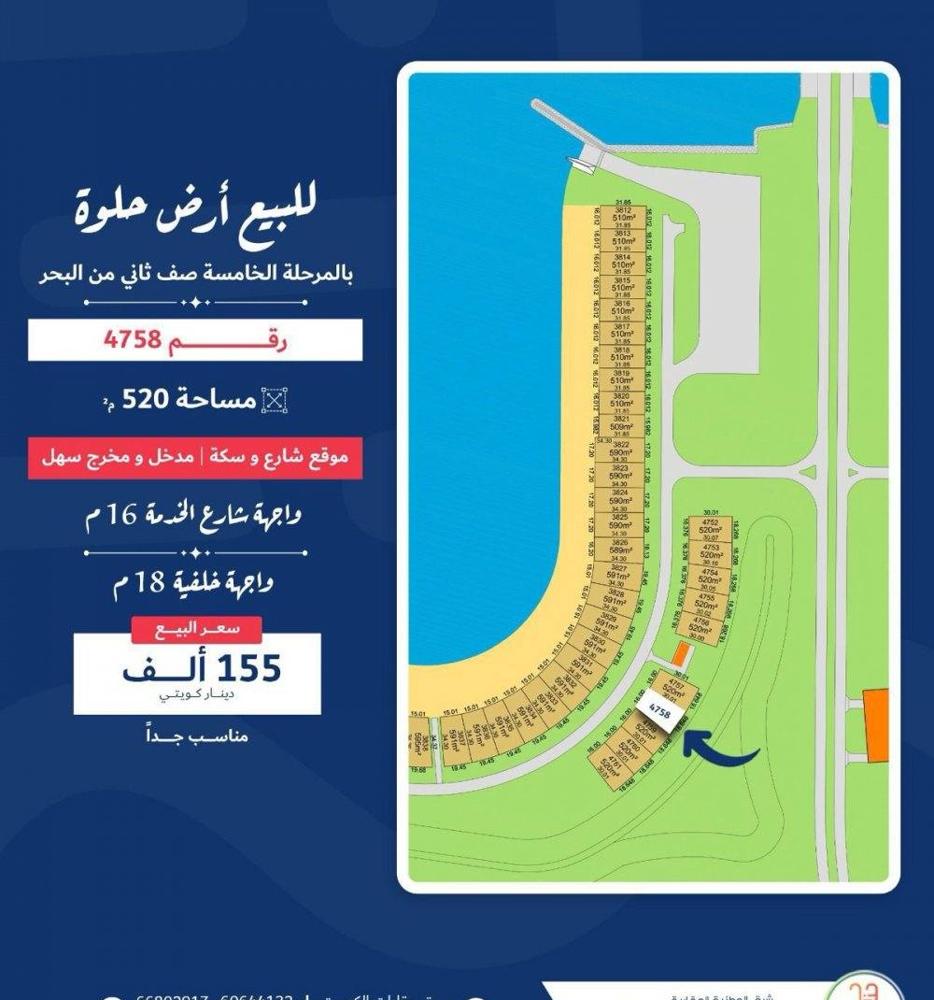 للبيع ارض بالخامسة صف ثاني مساحه520 متر ارتداد كبير مدخل ومخرج سهل جدا
