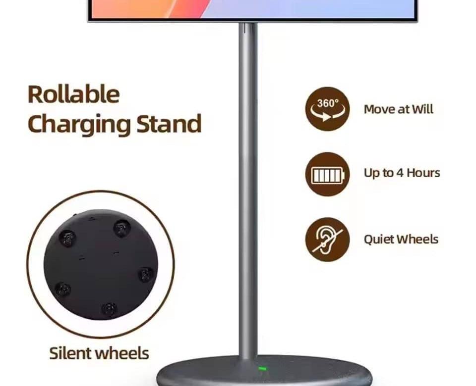 شاشه ذكيه متنقلة مناسبه لجمعات العوايل الشاشه يتحمل عليها مل البرامج والتطبيقات ويتحمل عليها سين جيم ومخمخ تجيك ب ٣ احجام متحركة ٣٦٠ درجه شاشه لمس