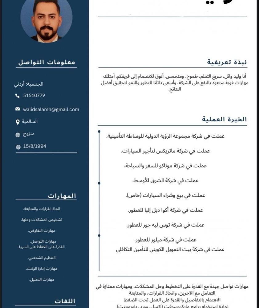 ابحث عن عمل مناسب فتره صباحيه سريع التعلم ملتزم بلمواعيد العمل اردني الجنسيه العمر 30