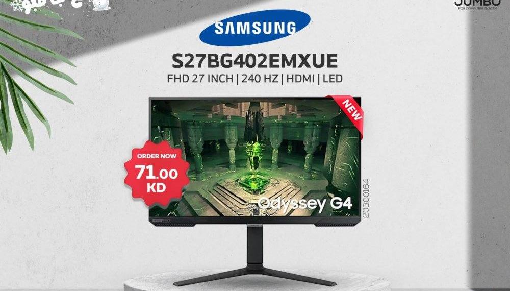 إستمتع بأحدث موديلات الشاشات من جامبو العالمية 🛒☄💫 أحصل على شاشة جديدة من جامبو العالمية و إنجز جميع مهامك بإتقان و دقة و جودة مميزة أحصل على شاشة من موديل☄: NEW MONITOR SAMSUNG S27BG402EMXUE✨ بسعر 71 KD الآن و لا تفوت الفرصة🔥🛒 Specifications: 🔵Screen Size: 27 Inch 🔵Screen Resolution Type: FHD 🔵Refresh Rate: 240 Hz 🔵Screen Connector Type: HDMI 🔵Panel Technology: LED 🔵Response Time : 1 msec