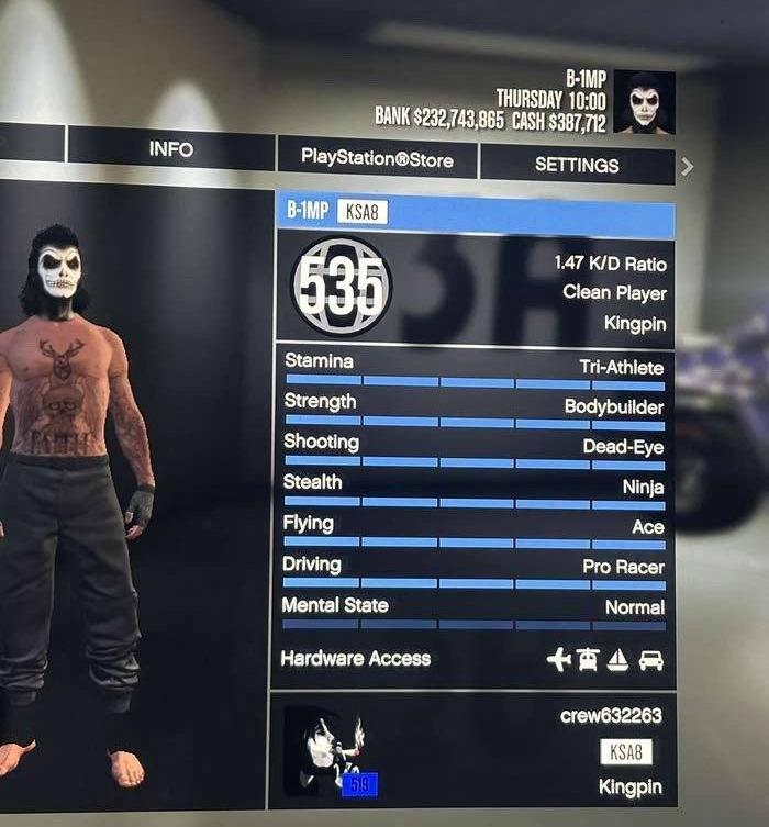 احساب قراند 5 لفل 535 فلوس 298مليون سيارات فوق 300 سياره مهكره و طيارات طقات فل و في كل الوشمه الهلوين و ملابس الهلون و الكرسمس K/D 1.47 ملابس سروال الاسود و البيج و الحمر الحساب منزل قراند في و في سكنات فورت و في لعبة ردد ردمشن 2 و فلوسه فوق 100 الف و لفل فوق 100 و في سكانت فورت 14 سكن تواصل واتس فقط🔴🔴