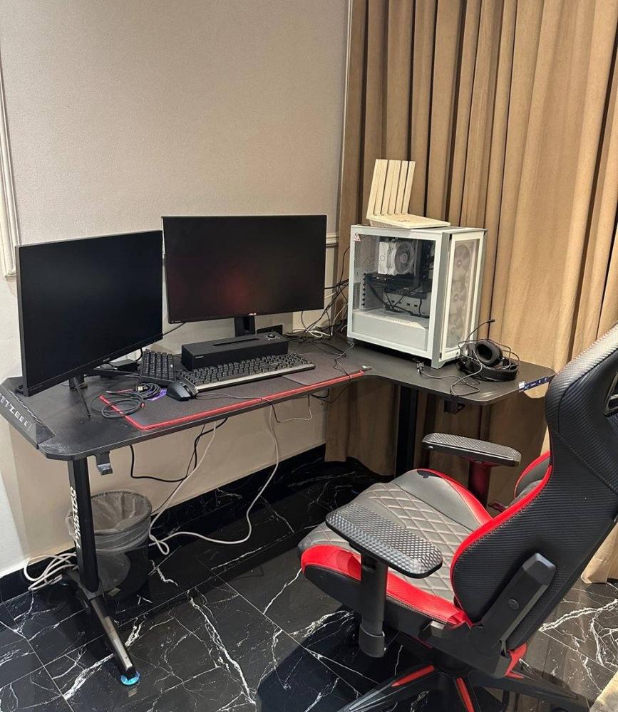سيت اب كامل للبيع استعمال اقل من شهر 5060 Core i514400f Ram 16 ddr5 B760 Power 750w Case 4 fan طاوله زايه وكرسى وشاشه ٢٧ وكامل مرفقاته لا يدق الا الصامل