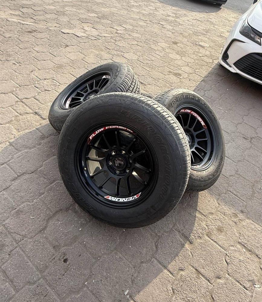 للبيع رنقات لينزو اصليه مقاس ١٨ تركب على F-150 رنقين مدخلهم مخرطه . + للبيع تواير بريجستون فيهم عمر كامل مقاس 265/65/18 ( استعمال ٤ شهور فقط ) السعر : ٢٦٠
