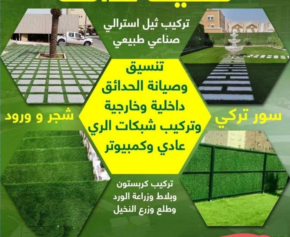 تنسيق حدائق تركيب تيل صناعي وطبيعي سور تركي تركيب بلاط وكربستون زراعة نخل تمديد شبكه ري قص الأشجار في الكويت