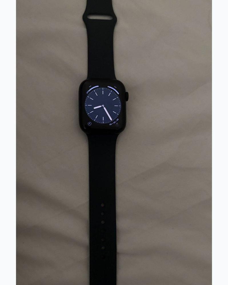 ساعة ابل واتش 8 الحجم 45 نظيفه مع ملحقاتها من الغانم ويجي معاها حماية شاشة