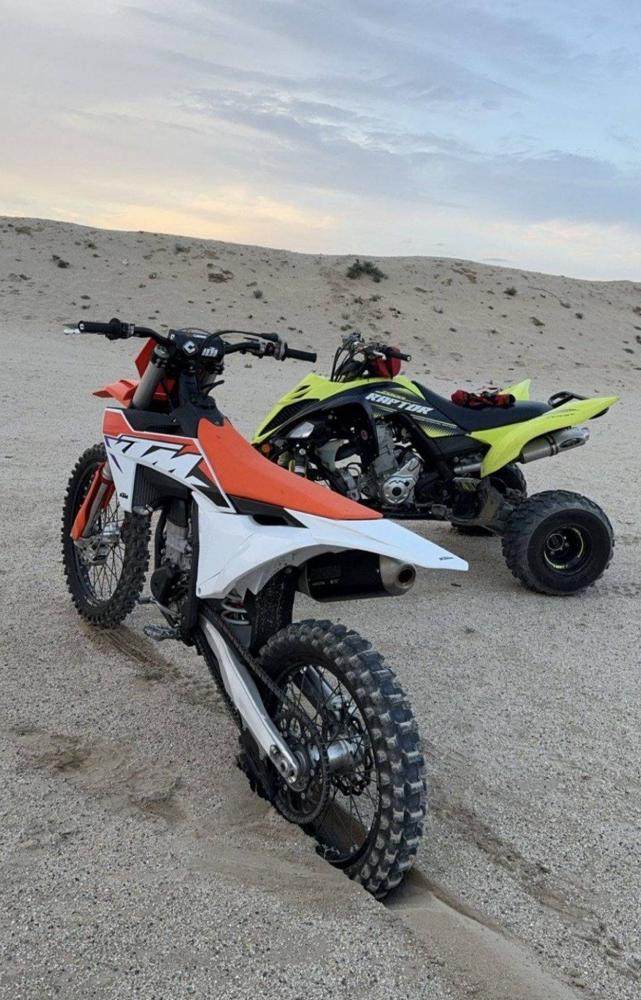 للبيع ktm 450 sxf ماشي ٢٦ ساعه توني مسوي له سيرفس السيكل نظيف مايحتاج له شي بس في ملاحضه وحده مسكه البريك مكسور ربعها بس ولا كل شي اموره طيبه السعر ٢٦٠٠ نهايتي فيه ولا يدق إلى الصامل