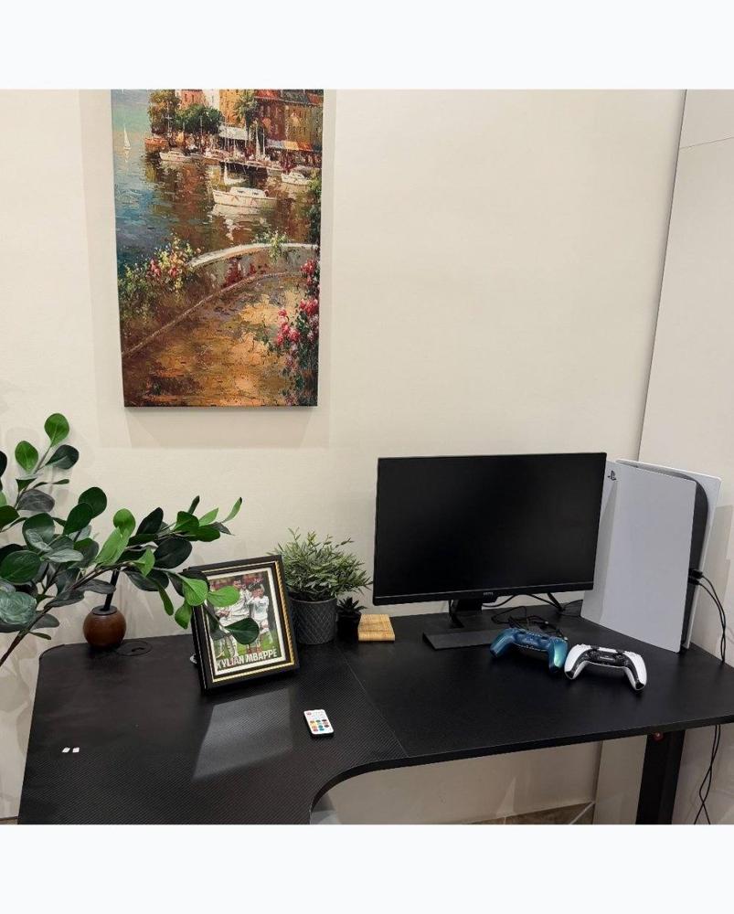 سوني ٥ بس مستخدمها مرتين ومعاها يدتين اصليه والشاشه benq واضحه وقويه حق السوني والطاوله معه ليت لي اي دي الكرسي جديد كلشي نظيف وشرط مافي زلغه اب كل الاغراض