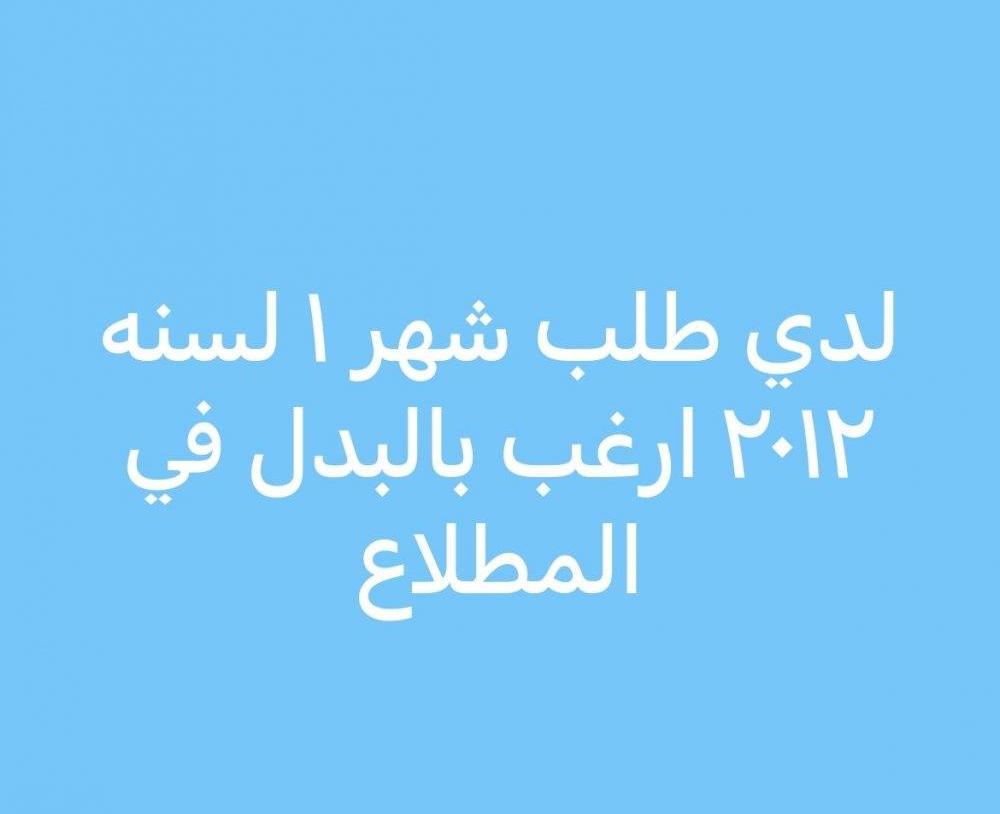 لدي طلب شهر ١ لسنه ٢٠١٢ ارغب بالبدل في المطلاع واتس اب فقط