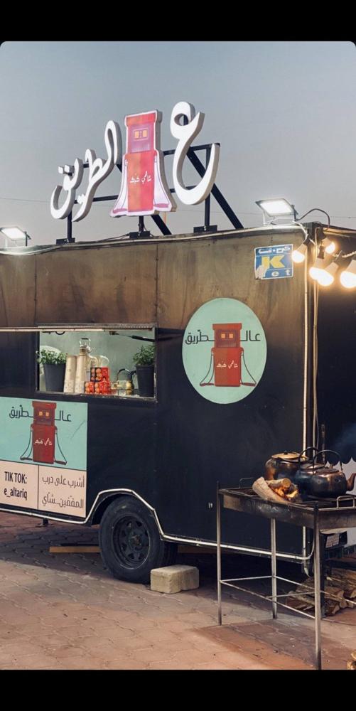 فودترك شاي مرتب ومجهز تمديد كهربهاء ومغسله مع لوحات إعلانيه