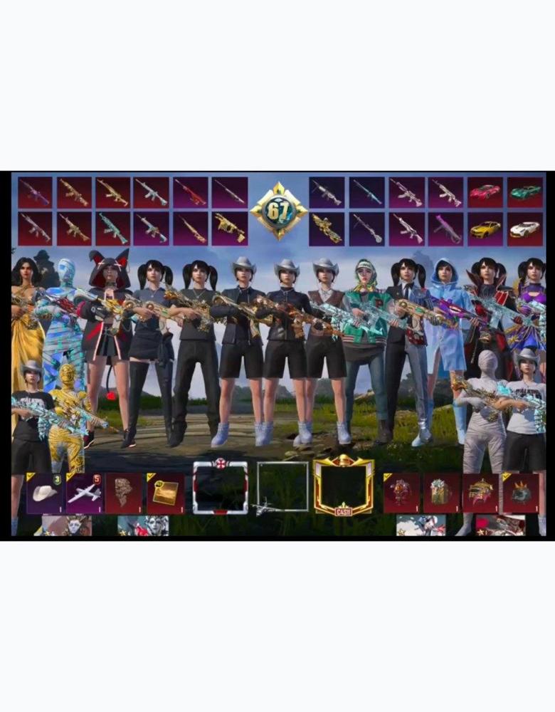 - لڤل 84 -المجموعه 67 - المثك 100 - الميثك الذهبي 4 - ايطار كونكر جديده وايطار رزنت ايفل وايطار الطياره الفضي - 2 خوذه ميثك - 3 جنطه ميثك ووحده ذهبيه - 1 لوبي ميثك - 5 بدله اكس - 3 سيارات ميثك ودوج - المختبر : 50 + يو ام بي بيانو عداد akm + عداد m4 - الماكس : 8 - الميثك : 7 والباقي موضح بالفيديو الربط : فيس بوك + ايميل بـ : 300