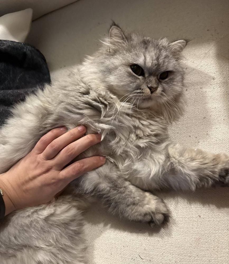 قطه للتبني لقيناها عند البيت ومبين اهلها مهتمين فيها شعرها مايطيح كلش واليفه وانا ماقدر اتحمل مسووليتها