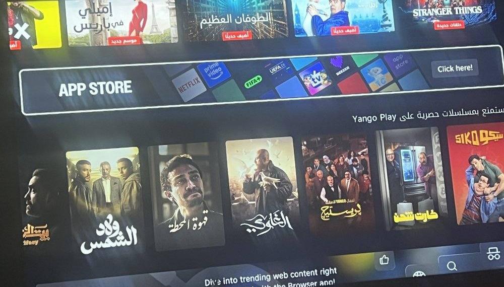 يدعم android و Apple AirPlay- Netflix - YouTube - OSN - App Store - Shahid- mobile App Vida - Safari WhatsApp only التواصل واتساب Browser
