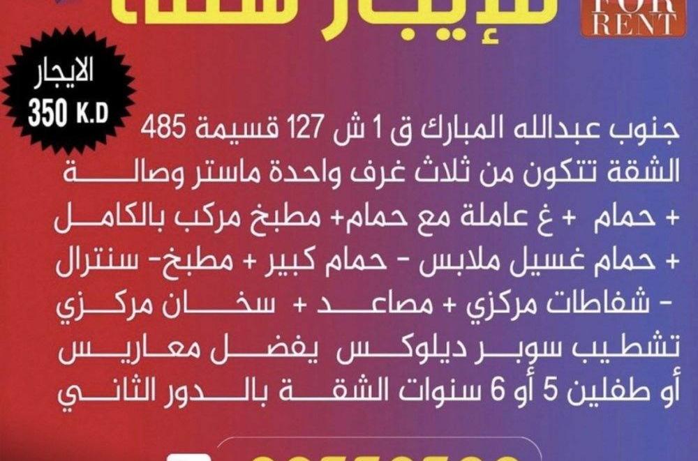 شقه للايجار الدور 3