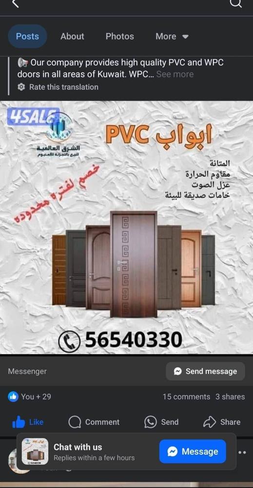 📢 توفر شركتنا أبواب PVC عالية الجودة في جميع مناطق الكويت! ✨ مميزاتنا: - مقاومة للعوامل الجوية والرطوبة - متانة وسهولة في الصيانة - عزل للصوت والحرارة #ابواب #ابواب_pvc #جودة_وأناقة #ديكور_منزل #تحسين_المنزل #منازل_الكويت #عزل_صوت #عزل_حرارة #تصميم_داخلي #البيت_الحديث #الكويت #حولي #السالمية #الفروانية #الجهراء #الاحمدي #أبواب_متينة #أبواب_مقاومة_للرطوبة #صيانة_سهلة #تصاميم_عصرية #ابواب_عازلة_صوت #ديكورات_داخلية #منزل_أنيق #منزل_مريح #ابواب_حديثة