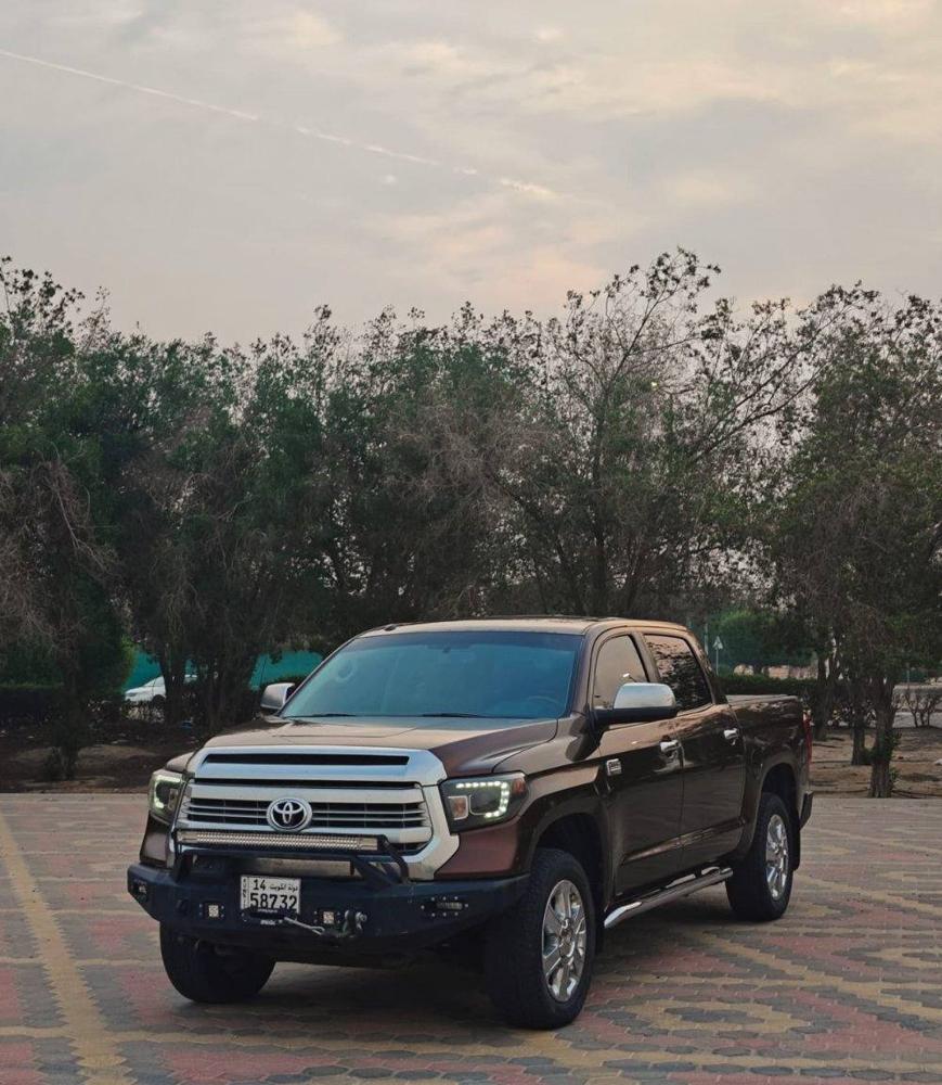 للبيع تويوتا تاندرا موديل 2014 اصدار 1794 وارد امريكا غمارتين لون عودي من داخل تان جلد ماشي 251 الف كيلو 156 ميل كامل المواصفات حماية وجه ربع كبوت وتضليل حراري + تشغيل عن بعد +مثبت سرعة + المقاعد تسخين وتبريد + دعاميات حديد + الدعاميات حقت الوكالة موجودة + ونش ماركة ايرون مان + تسكيرة حوض + معاون فرار امريكي + تواير مارشال ربع حجري +فلتر شوته afe امريكي+ الجامة الخلفية تنزل كاملة+ شاشة تسلا الاصلية طلبية من امريكا فيها جميع البرامج + شاشة الوكالة موجودة صبغ الوكالة فحص قير مكينة شاصي للبيع الاعلى سعر دون الكسر بالحلال