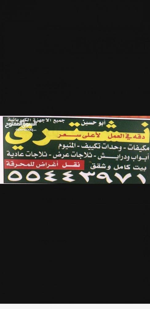 نشترى جميع انوع اسكراب وحدات مكيفات ثلاجات طبخات مطابخ دريش ابوب بيوت كامله وشقق