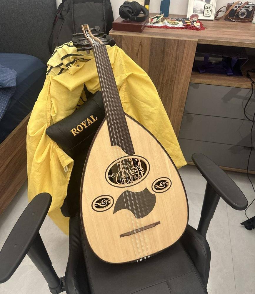 للبيع عود صناعة عود ومرواس سنة 2025 جديدد العود تبارك الرحمن نغم باور عالي ونظيف مفاتيح ابانوس اوتار اورورا السعر 180