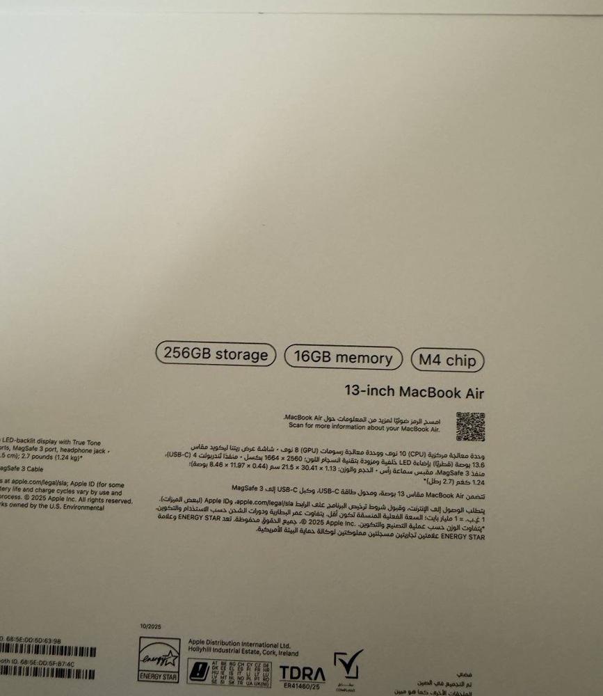 ابل ماك بوك اير 13 انش جديد بالكرتون غير مستخدم 256G