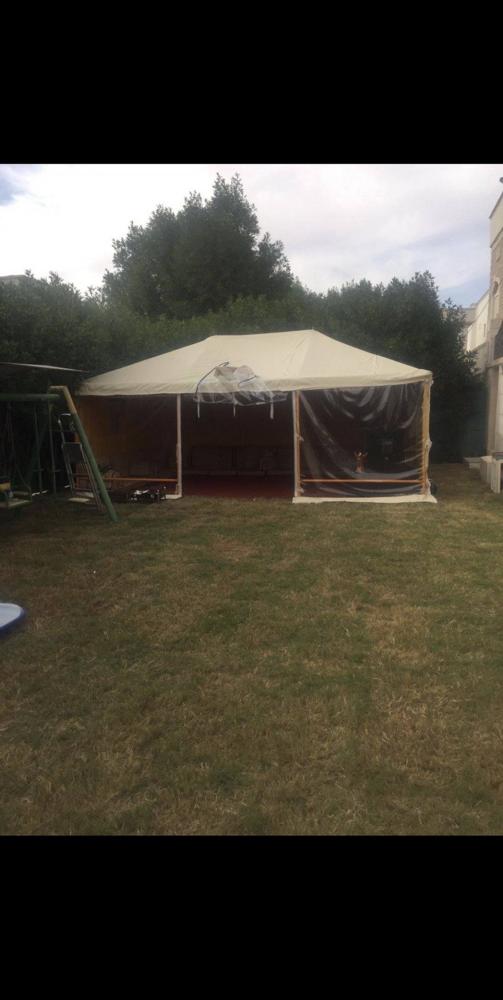 للبيع ديوانيه خيمة 6*4 من محل القطان 3 طبقات السقف والارواق جملون مع رواق إضافي شفاف + 2 جفير تفصال لحماية الخيمه عند طويها استعمال خمس مواسم في حديقة البيت فيها 4 اطناب احتياط للبر . مع الاوجار عباره عن دوه ودرج وكبت للدلال وع مطارحها ومراكيها السعر 280