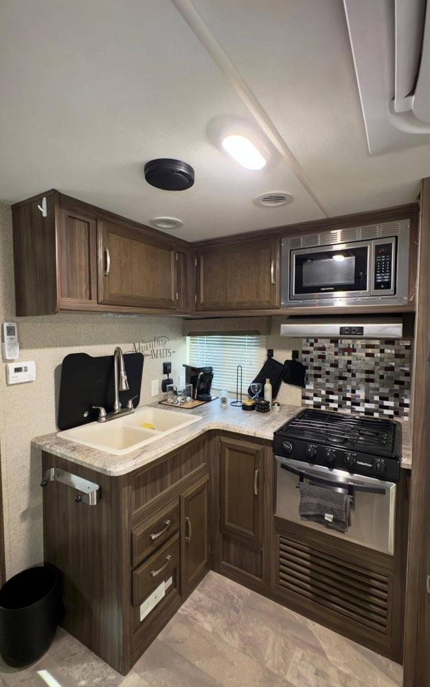 للبيع كرفان2018 Coachmen Apex 232RBS الحجم 27 قدم امريكي موديل 2018 فيبر من الخارج يتكون من صاله وغرفه نوم رئيسيه معزوله عن الصاله وغنفة الصاله تتحول الي سرير نفرين وحمام كبير وشور بوكس مضله خارجيه تماتيك مع انارة المضله مخفيه وسماعات خارجيه وداخليه وضاءه تحت الكرفان وأمام الكرفان من المصنع وسماعات الخارجيه فيهم اضاءه مخفيه وتم التركيب 1-بطاريه امرون حجم 200 2-لوحه طاقه شمسيه الكبيره ياباني 3-محول 5000 اسباني مع مروحه تبريد 4-بلاكات ضغط عالي عدد 4 240 فولت 5-كشافات خارجيه عدد 2 6-ابجورات 12 فولت للسرير 7-قاعده غاز كويتي 8- تكيف طنين انڤيرتر كاسيت + تكيف الوكاله موجود 9-جيك امامي كهربا 10- كاميرا خلفيه مع شاشه تركب داخل السياره اثناء القلص الكرفان نظيف ولم يستخدم في الكويت اكثر من شهر و اوراق الجمارك كلها موجوده والرجاء للجادين فقط . للاستفسار تسعه تسعه ثلاثه ثلاثه اربعه ثلاثه ثلاثه واحد