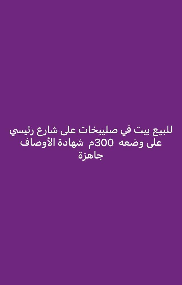 للبيع بيت في صليبيخات شارع واحد رئيسي ٣٠٠ م على وضعة